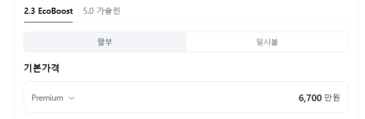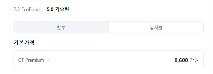 2.3 EcoBoost 6700만원, 5.0 가솔린 8600만원